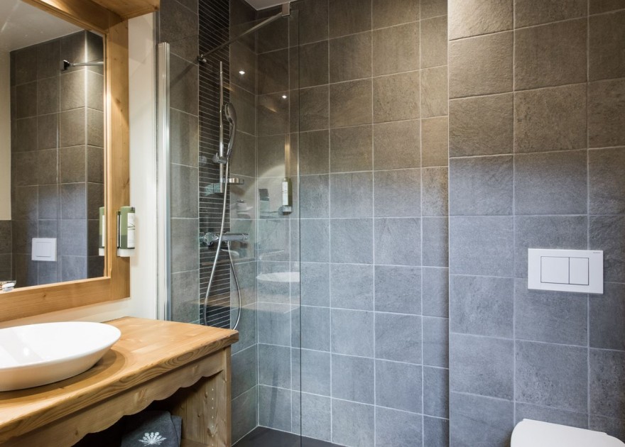 Dans l’aile Est du chalet La Griotte 4*, vous disposerez de deux autres suites parentales avec salles de bains privatives et accès direct sur l’extérieur.